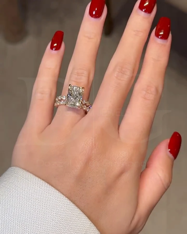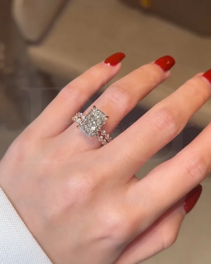 IGI Certified Handmade Radiant Cut Diamond Floating Bubble Pave Engagement Ring Unique Hidden Halo Women's Fine Jewelry Band
